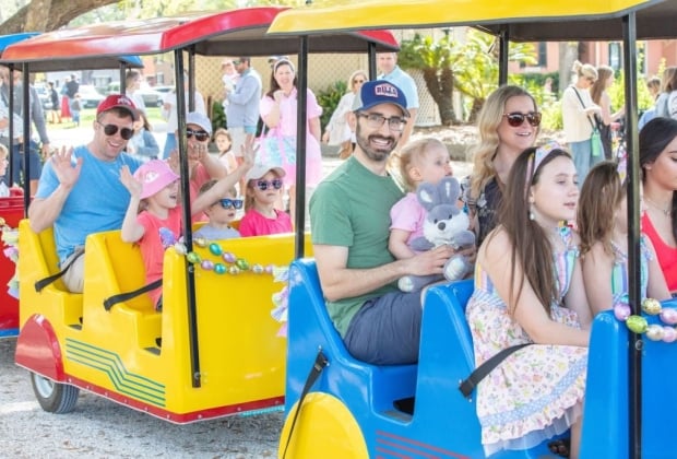 Hop aboard the Bunny Train and chug along through Harbour Town! Trackless train rides begin in the Liberty Oak area and run approximately every 10 minutes.