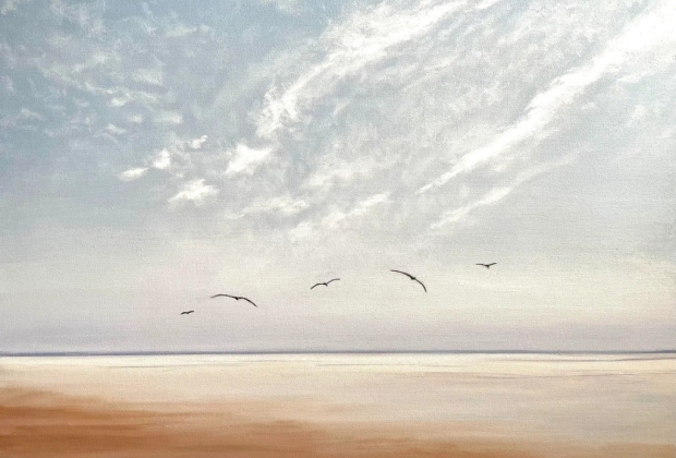 Through soft color palettes, expansive horizons, and subtle transitions of light and atmosphere, her paintings reflect the peaceful interplay of water and sky. Each piece invites viewers to slow down, breathe, and reconnect with the simplicity of the natural world.